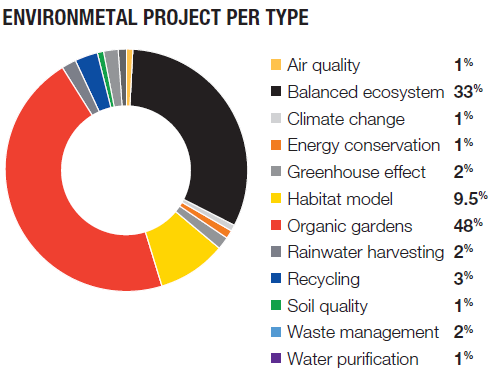 The majority of the organisations that were funded for organic gardens were schools of which 80% of them were also either funded for a Jojo Tank (Water harvesting tank) or an irrigation system. The boreholes would fall under the “Water purification” projects.