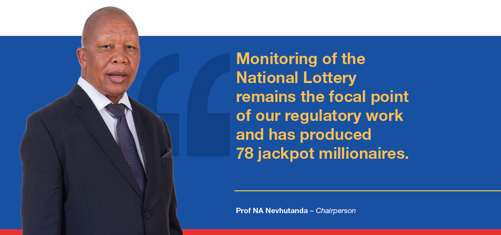 | With 20 years of better regulation of the lotteries and sports pools industry, the NLC continues to be a catalyst in changing the lives of millions of South Africans and an economic contributor in various sectors of our economy. | ![]() |