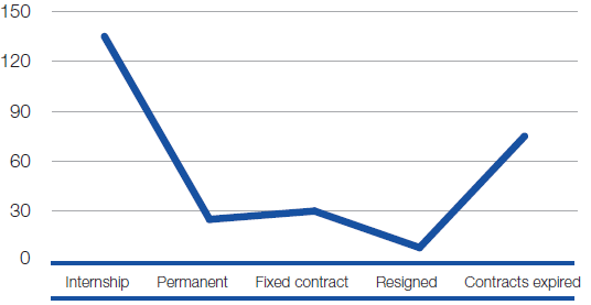 The NLC internship programme continued to open job opportunities, and on the job training platforms for interns in the organisation. Since the inception of the internship programme, there have been 23 intakes of interns to permanent appointment as depicted by the graph below.