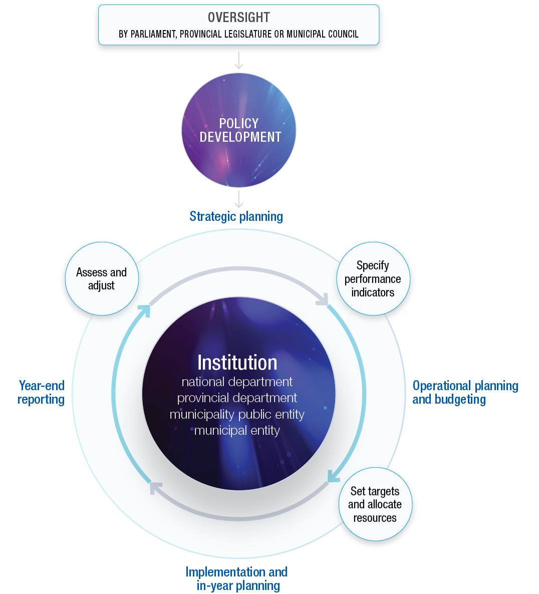 The diagram below depicts the relationship between the processes and also highlights the Executive Authority’s accountability for the process to Parliament.