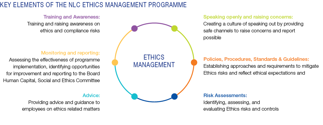 The Board recognises the role that compliance with applicable regulatory requirements plays in the governance and sustainability of the Commission and undertakes to subscribe to fundamental principles to ensure compliance with relevant legislation. In discharging its duties of ensuring that the Commission complies with legislation, the Board has committed that the Commission shall conduct its business in accordance with applicable regulatory requirements and ensure that appropriate policies and frameworks are committed to, promoting a culture of compliance within the NLC. The Board Regulatory Compliance and Legal Committee is charged with a duty to ensure organisational compliance is maintained at an acceptable level and ensure that all instances of non-compliance are adequately followed up and resolved with sound and practical business recommendations.