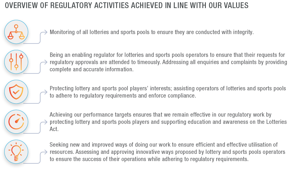 The NLC’s regulatory compliance value chain is based on the core regulatory activities of a well-functioning lotteries and sports pools regulator.